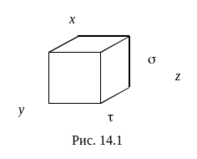 . Рассмотрим напряженное состояние, изображенное на рис. 14.1. Поскольку sx = txy = txz = 0, то данное напряженное состояние является плоским,