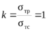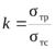 Коэффициент k, равный отношению предела прочности при растяжении к