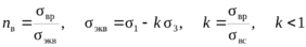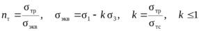 Напряжение s3 записано со знаком минусом, поскольку это сжатие, sвс - предел прочности при сжатии. Эквивалентное напряжение равно