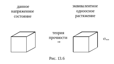 Рассмотрим некоторое напряженное состояние и эквивалентное ему одноосное растяжение (рис. 13.6).