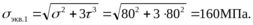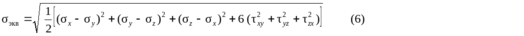 . Поэтому сначала надо определить главные напряжения σ1 и σз, а затем подсчитывать эквивалентное напряжения. Одно из главных напряжений в данной точке уже известно, это напряжение sz = 0. Два других найдем из приведенной ниже формулы. Только получив значения трех