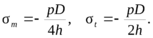 При проектировании оболочки диаметр цилиндра D определяется из конструктивных соображений. Толщину стенки оболочки h находят из условия прочности