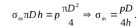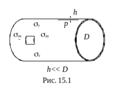 . Эту силу уравновешивает внутренняя сила, равная напряжению sm, равномерно распределенному по площади поперечного сечения оболочки, умноженному на площадь сечения p D h.