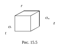 Напряженное состояние тонкостенной цилиндрической оболочки, нагруженной внутренним давлением, имеет вид, представленный на рис.15.5. Это двухосное растяжение,