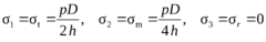 Таким образом, во всех точках цилиндрической части оболочки напряженное состояние - двухосное растяжение.