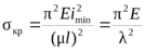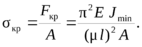 Чтобы получить выражение для критического напряжения, преобразуем формулу Эйлера, разделив критическую силу Fкр на площадь поперечного сечения стойки А