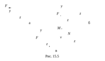 Рассмотрим рис. 15.11. На этом рисунке пунктиром изображена в общем виде форма стойки после искривления, введены обозначения: v это перемещение по оси y, т.е функция прогибов, Q - угол поворота оси стойки, r - радиус кривизны оси стойки. Поскольку мы рассматриваем искривленное состояние стойки, бесконечно близкое к прямолинейной форме, то прогиб стойки v и угол поворота оси стойки Q бесконечно малы. При малых углах тангенс угла равен самому углу. С другой стороны тангенс угла касательной к кривой есть первая производная от функции, описывающей эту кривую. По этой причине можно принять, что