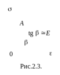 Графически эта зависимость представлена прямой 0А на рис. 2.3. Тангенс угла наклона прямой 0А к оси e пропорционален модулю упругости Е. С учетом масштаба графика (рис.2.3) модуль Юнга можно определять как тангенс угла наклона первоначального прямолинейного участка диаграммы: Е =