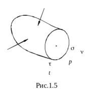 апряжение p обычно раскладывают по нормали n к площадке и по оси t, лежащей в самой площадке, рис. 1.5