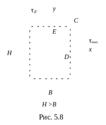 Касательное напряжение в середине короткой стороны составляет долю от максимального касательного напряжения: tE = h tmax (h < 1, для квадратного сечения h = 1).
