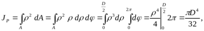 Так как полярный момент инерции это интеграл, то для толстостенной трубы JP можно определять как разницу между моментом инерции наружного контура и отверстия