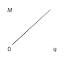 , потому что силовой фактор работает на перемещении, которое сам же создает. Момент М постепенно возрастает от нуля до конечного значения и пропорционально ему растет угол φ (рис.5.5). Площадь треугольника на рис. 5.5 и есть работа, совершенная моментом М в процессе нагружения бруса.