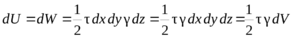 здесь t dx dy - элементарная сила, g dz - перемещение, dx dy dz = dV - элементарный объем. Поскольку, согласно закону Гука при сдвиге,
