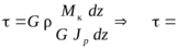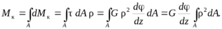для данного сечения есть величина постоянная. Это погонный угол закручивания бруса, т. е. угол закручивания, приходящийся на единицу длины бруса. Эта величина не изменяется по площади сечения, поэтому этот член вынесен за знак интеграла. Модуль сдвига G – константа, его тоже вынесли за знак интеграла.