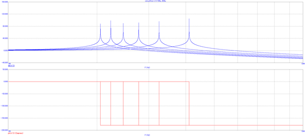Благодаря многовариантному анализу, делаем вывод, что при увеличении емкости конденсатора С или сопротивления R, мы можем наблюдать одинаковую зависимость, а именно: Возрастает зависимость амплитуды выходного сигнала от частоты входного сигнала при низких частотах. Так же уменьшается разность фаз при низких частотах.