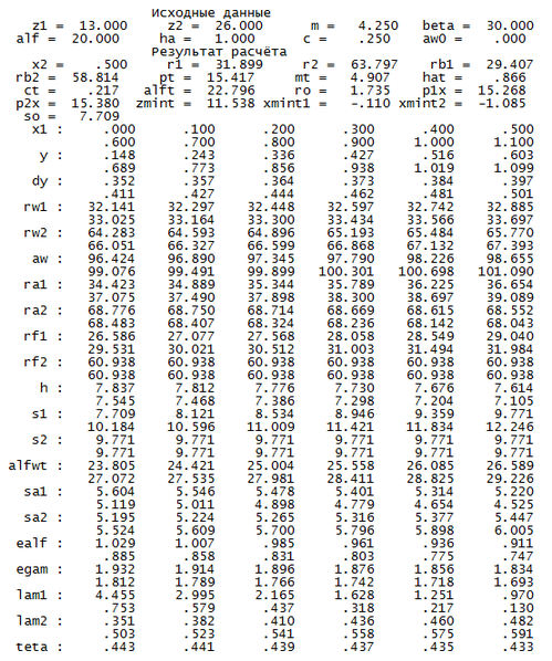 В результате расчета зубчатой передачи на ЭВМ(программа ZUB.exe), были получены следующие данные.