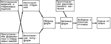Технологические операции процесса литья по выплавляемым моделям представлены на рис. 6.2.