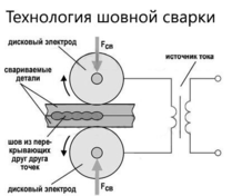 70) Контактная шовная сварка – сварка, при которой соединение нагретых проходящим током заготовок происходит между вращающимися дисковыми электродами – роликами, передающими силу сжатия на заготовки. Техн.возможности: применяют для обеспечения герметичности соединений (резервуары, емкости); свариваемые металлы из низкоуглеродистых, углеродистых, низколегированных конструкционных и легированных сталей, алюминиевых и медных сплавов; средние пределы свариваемых толщин составляют 0,5..3 мм; шовной сваркой обычно сваривают однородные материалы одинаковой толщины, собранные внахлестку. Бывает двусторонняя и односторонняя.