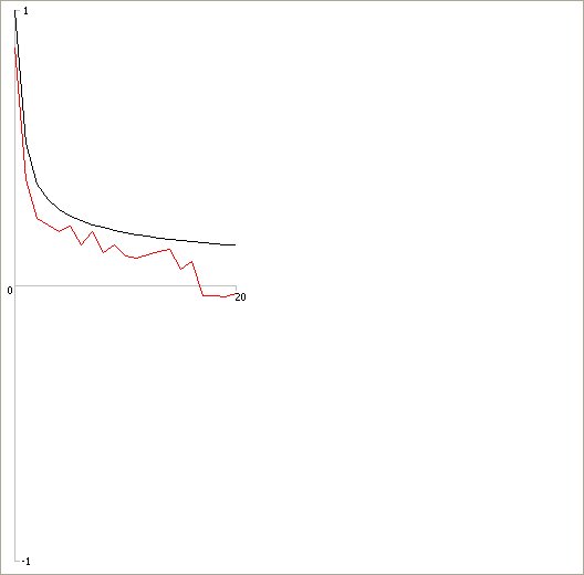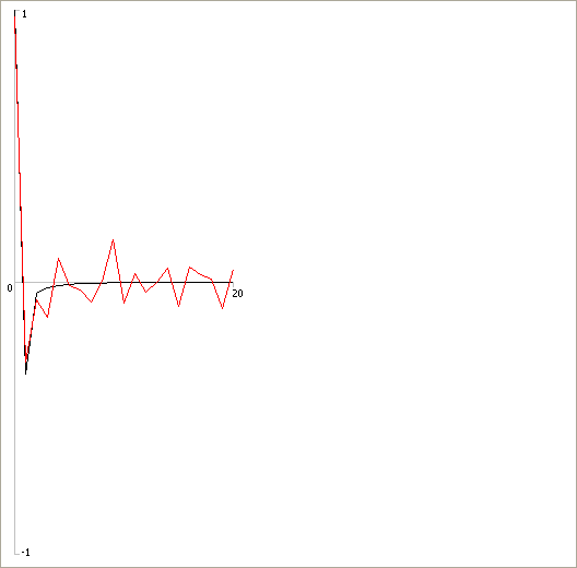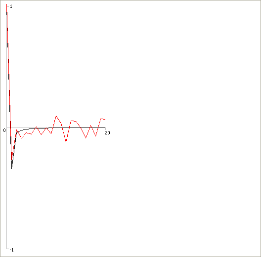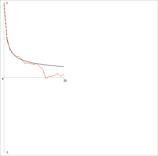 Ниже представлены графики оценок ковариационных функций для смоделированных ФБД, траектории которых представлены на рис. 1-4. На графиках красным цветом обозначена оценка ковариационной функции, черным – точное значение ковариационной функции, вычисленное по формуле (6). Графики построены для 20 шагов.