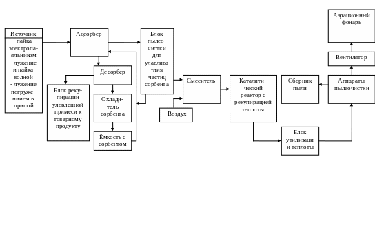 Принципиальная схема очистки отходящих газов на участке пайки и лужения