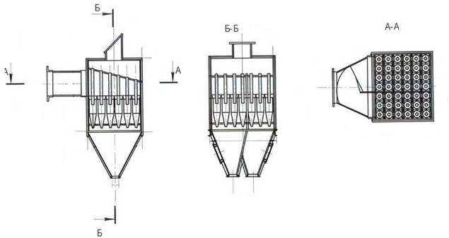 Вначале будем очищать отходящие газы от пыли. Так как размер частиц dч = 38 мкм, то оптимальным будет использовать батарейный циклон, эффективность очистки η = 95%.