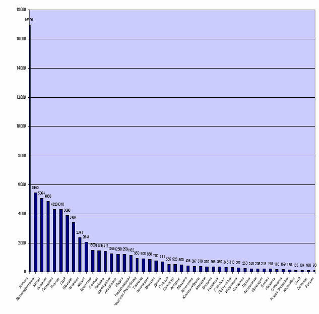 Рис. 5. Распределение по странам мира предприятий, сертифицированных по ISO 14001.