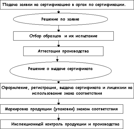 Сертификация проводится по схемам, классификация которых дана в ИСО и которые перечислены в «Общих правилах подтверждения соответствия продукции установленным требованиям в Российской Федерации», разработанных Госстандартом РФ.