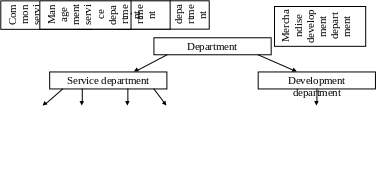 Значительная активность гипо-гиперонимических системных отношений проявляется в лексико-тематической подгруппе с архисемой «лицо по профессии» и «часть, отдел компании». Между компонентами данных подмножеств развиваются, главным образом, два уровня иерархических отношений. Приведем пример: