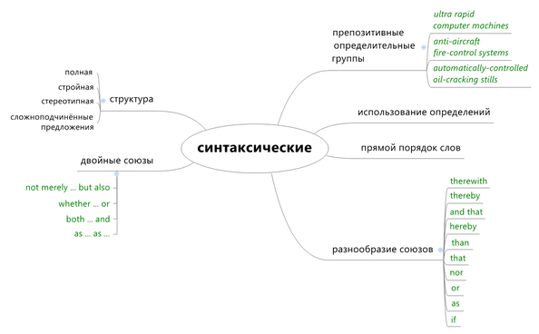 Таким образом, всю совокупность синтаксических особенностей можно изобразить в виде схемы: