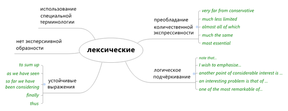 Таким образом, всю совокупность лексических особенностей можно изобразить в виде схемы: