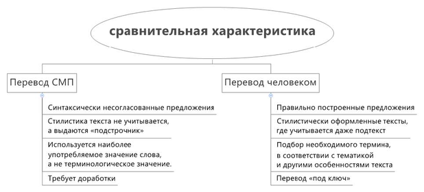 На наш взгляд, она не очень верна, и отчасти предвзята. Для проведения такого сравнения нужно знать тип СМП и принцип ее работы. Причем, когда говорят о переводе «с помощью вычислительной техники», то часто путают понятия. Вообще, в современной лингвистике можно выделить ряд направлений использования компьютера.