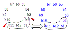 При двухточечном кроссовере для родительской пары случайным образом выбираются 2 точки раздела, и родители обмениваются промежутками между ними. В результате получаются два ребенка. Удобно в этом случае представить строки в виде колец.