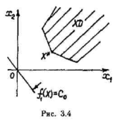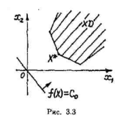 Пример данной области XD и решения ЗЛП при п= 2 приведен на рис. 3.3. Стрелкой на линии постоянного уровня функции f(X)= с0 будем показывать направление ее возрастания.
