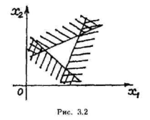 или хi = 0) и на самой этой гиперплоскости. Данное полупространство (при п=2 полуплоскость) является выпуклым множеством. Ограничение типа равенства выделяет в пространстве координат гиперплоскость (при n= 2 плоскость), являющуюся тоже выпуклым множеством. Пересечение всех полупространств и гиперплоскостей, задаваемых всеми ограничениями, если они не противоречивы, будет областью XD допустимых решений ЗЛП. Область XD является выпуклой многогранной (при п= 2 многоугольной) областью или выпуклым многогранником (многоугольником или в частном случае отрезком прямой или точкой).