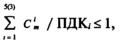 где Сim– концентрация вещества i-го ЛПВ в расчетном створе водоема; ПДКi–предельно допустимая концентрация i-го вещества.