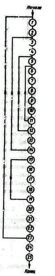 1–выбрать сосуд; 2-–объяснить общее предназначение сосуда и его трубопроводов; 3–выбрать трубопровод; 4–объяснить предназначение выбранного трубопровода; 5 – использовать ключевые слова из 1-й строки табл. 4.9 для создания отклонения; 6–теоретически развить имеющее смысл отклонение; 7–исследовать причины (события), которые могут на практике привести к созданному отклонению; 8 – исследовать последствия от созданного отклонения; 9 – выявить опасности; 10 – провести необходимую регистрацию проделанной работы; 11–повторить шаги 6...10 для всех имеющих смысл отклонений, образованных ключевыми словами i-й строки табл. 4.9; 12– повторить шаги 5...11 для ключевых слов всех других строк табл. 4.9; 13– поставить на трубопроводе отметку «Исследовано»; 14–повторить шаги 3...13 для каждого трубопровода; 15 – выбрать компонент, систему или какую-либо их часть; 16 – объяснить предназначение выбранного объекта; 17– повторить шаги 5.. .12 для выбранного объекта; 18–поставить на объекте отметку «Исследовано»; 19–повторить шаги 15...18 для всех других объектов. компонентов, систем; 20–объяснить предназначение сосуда; 21–повторить шаги 5...12; 22–поставить на сосуде отметку «Исследовано»; 23–повторить шаги 1...22 для всех сосудов на данном чертеже; 24–поставить на чертеже отметку «Исследовано»; 25– выполнить шаги 1...24 на других чертежах