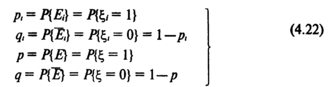 Если чепе Ei наступает с вероятностью pi, то, как следует из соотношений (4.21), с этой же вероятностью индикатор чепе ξi принимает значение 1. Поэтому справедливы следующие зависимости: