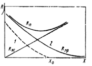 При принятии решений следует иметь в виду, что для ряда источников невозможно достичь уровня «нулевой» опасности. На рис. 4.30 кривая 1 соответствует случаю, когда можно достичь абсолютной безопасности, или нулевой опасности. В этом случае при расходах на защиту при необходимом конечном значении Х=Xо риск R становится равным нулю. Кривая 2 соответствует случаю, когда достичь абсолютной безопасности принципиально невозможно. Такое поведение эффективности затрат на защиту характерно, например для радиационно опасных производств, транспорта, промышленных предприятий. Если придерживаться принципа абсолютной безопасности, то необходимо применить все меры защиты, которые практически можно осуществить. Однако при этом помимо прямого риска Rnp, создаваемого данной технологией, и на уменьшение которого направлены усилия (меры безопасности), существует еще и косвенный риск Rкс. Он обусловлен, например строительными работами, изготовлением оборудования и материалов для защитных сооружений, их эксплуатацией и т. д. С ростом расходов X на безопасность риск Rпр уменьшается, а риск Rкс растет. Уменьшается также эффективность затрат на защиту. Начиная с некоторого уровня этих расходов, при дальнейшем росте Х будет происходить возрастание полного риска Rn = Rnp + Rкс. Поэтому при наличии источников, которые не позволяют достичь уровня нулевой опасности, следует принимать вариант решения с оптимизацией риска.