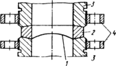1 – мембрана; 2 – коническая шайба; 3 – торцы сбросной магистрали; 4–соединительные фланцы.