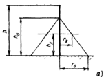 Рис. 5.13. Зоны защиты различных видов молниеотводов: а–одиночный стержневой; б–двойной стержневой; в–тросовый