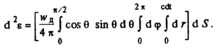 Энергия волны в объеме d V равна ck=WgdK В диффузном поле эта энергия распределяется равномерно во все стороны пространства 4я. Следовстгельно, на телесный угол dQ = d5fcos6/r2 приходится часть энергии, равная d^ == w^cosOd V(\S/^nr1. В сферической системе координат с полярным углом 9 элементарный объем d^=" AinOdOdcpdr и полная энергия через площадку d*? найдется в результате следующего интегрирования: