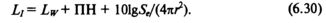 Таким образом, уровень интенсивности в данной точке определяется через уровень мощности и коэффициент направленности. Формула (6.29) справедлива в свободном волновом поле, т. е. поле, не имеющем границ, от которых могло бы происходить отражение волн. Свободное поле можно создать и в помещении, если сделать последнее из материала, полностью поглощающего энергию падающей волны. Величину 101gф называют показателем направленности и обозначают ПН.