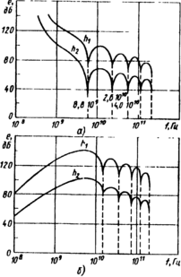 В области СВЧ, охватывающей дециметровые, сантиметровые и миллиметровые волны (f ^ 109...1010 Гц), длина волны λ соизмерима с диаметром экрана d, т. е. λ≥d, и эффективность экранирования носит колебательный характер (рис. 6.53). В этой области импеданс Z1 при экранировании
