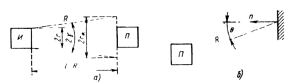 При облучении диффузным излучением, отраженным от площадки, которая характеризуется углом θ (рис. 6.54, б) и коэффициентом отражения, опасное расстояние