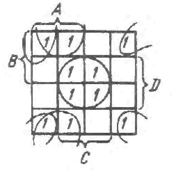 Занесем заданную функцию в карты Вейча на четыре переменных (рис. 2).