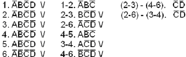 Так как склеиваться могут только элементарные конъюнкции одного ранга, то в дальнейших склеиваниях минтермы не участвуют, поэтому следует выполнить операции поглощения.