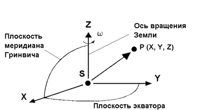 Рис. 3.2. Геоцентрическая прямоугольная система координат (X, Y, Z)