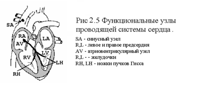 еханическое сжатие - систола сердца предваряется электрическим возбуждением [3]. Волна возбуждения в каждом цикле деполяризации начинается в синусном узле, расположенном в области передней стенки (устье - sin) верхней полой вены (рис 5. 2.5).