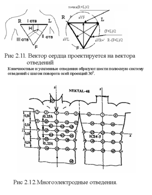 | I = L-R | aVR=R - (L+F)/2, | Vi=Ci-(R+L+F)/3, i=1…6. где (R+L+F)/3-нейтраль Вильсона |
