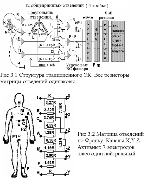2) ЭК поликлиник (для кабинетов функциональной диагностики). Это основной тип ЭК: ЭК12/6ТИ, ЭК12/12ТД. Методика 12 ОП отведений и ортогональные отведения Франка.